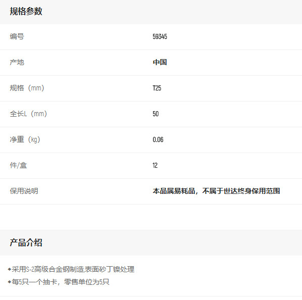 產(chǎn)品名字:世達(dá)5件套6.3mm系列50mm長中孔花型旋具頭TT25