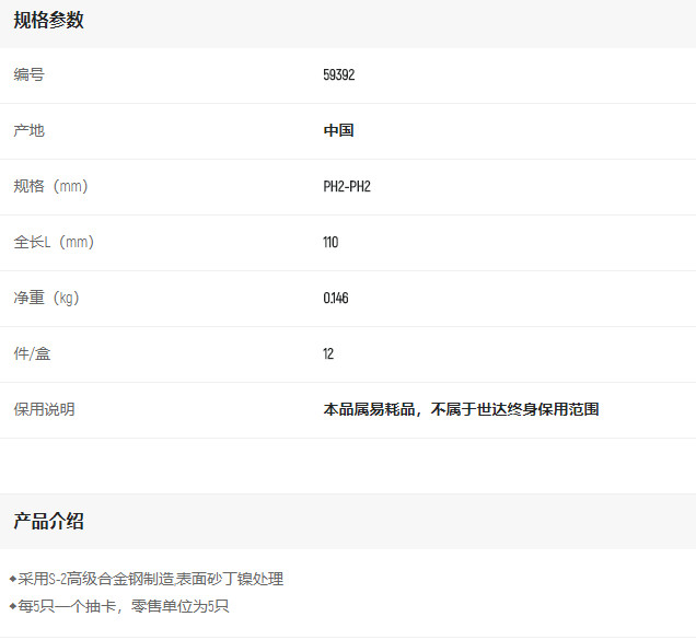 產(chǎn)品名字:世達6.3mm系列65mm長十字旋具頭PH2-PH2