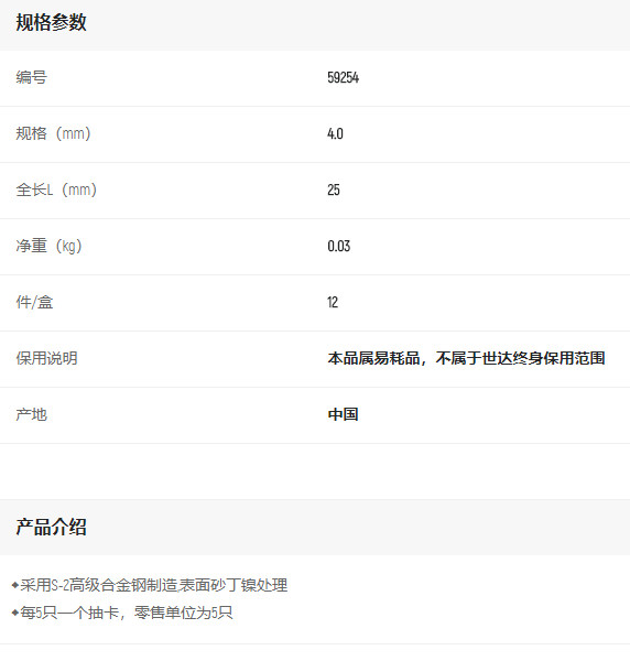產(chǎn)品名字:世達5件套6.3mm系列25mm長六角旋具頭4mm