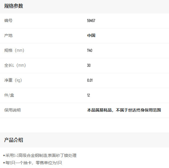 首頁>產品中心>螺絲批>旋具頭>世達5件套8mm系列30mm長中孔花型旋具頭T40