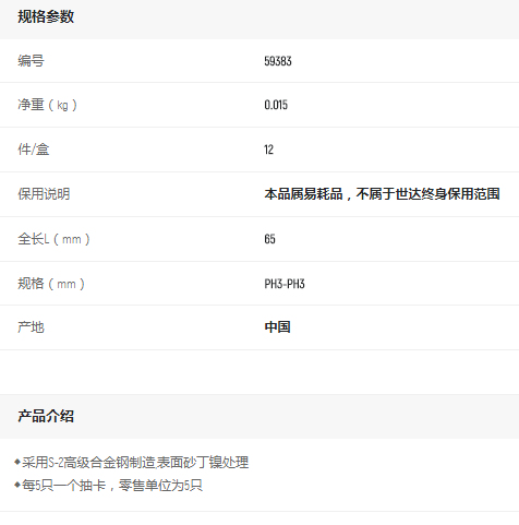 產(chǎn)品名字:世達6.3MM系列65MM長雙頭旋具頭PH3-PH3