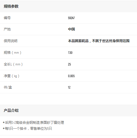 產(chǎn)品名字:世達(dá)6.3mm系列25mm長(zhǎng)中孔花型旋具頭T30