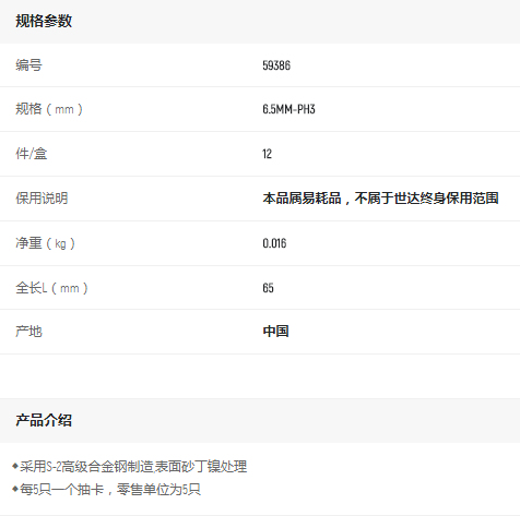產(chǎn)品名字:世達6.3MM系列65MM長雙頭旋具頭6.5mm-PH3