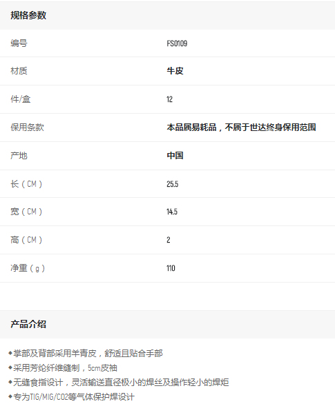 首頁>產(chǎn)品中心>手部防護>手套>世達氬弧焊接手套L