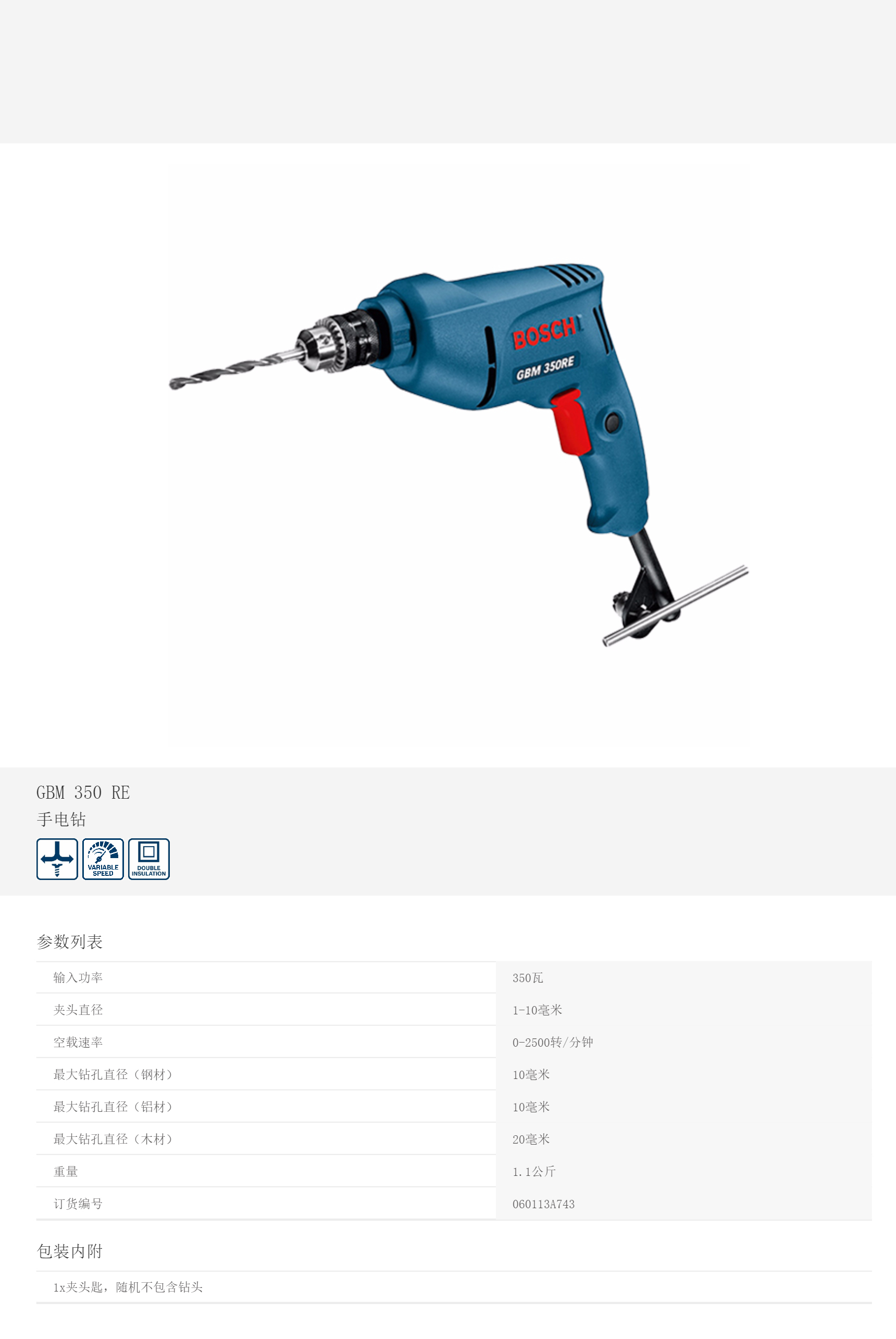 產(chǎn)品名字:博世手電鉆GBM350RE