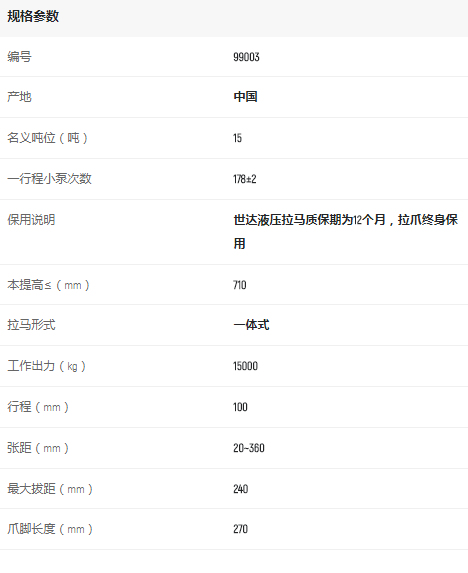 產(chǎn)品名字:世達(dá)一體式液壓拉馬15噸