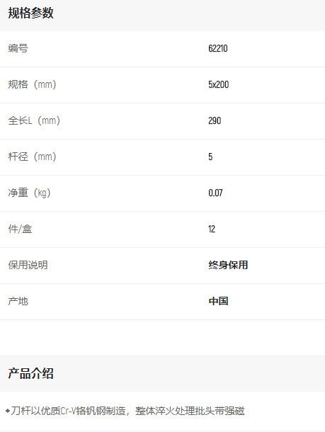 首頁(yè)>產(chǎn)品中心>螺絲批>一字螺絲批>世達(dá)A系列一字批5*200mm