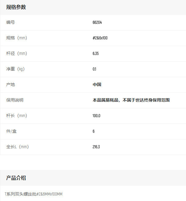 產(chǎn)品名字:世達雙頭螺絲批#2-6x100mm