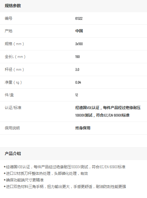 產(chǎn)品名字:世達一字絕緣螺絲批3*100MM